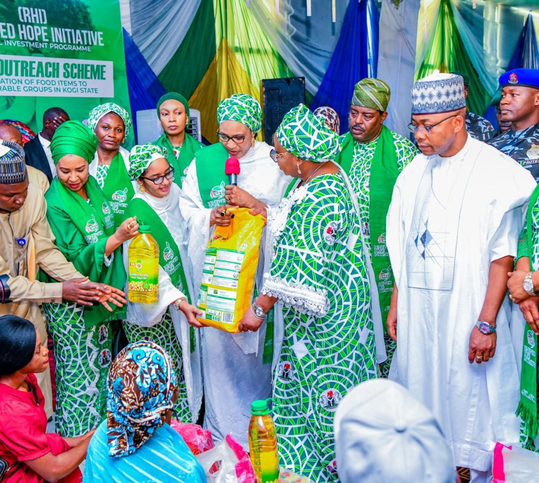 In her words, “It is a great opportunity standing here today to welcome the wife of the President, Senator Oluremi Tinubu represented by the wife of the Vice President Hajiya Nana Shettima who is here to renew the hope of the poor amongst us in Kogi State and to extend a helping hand to those who are in need”